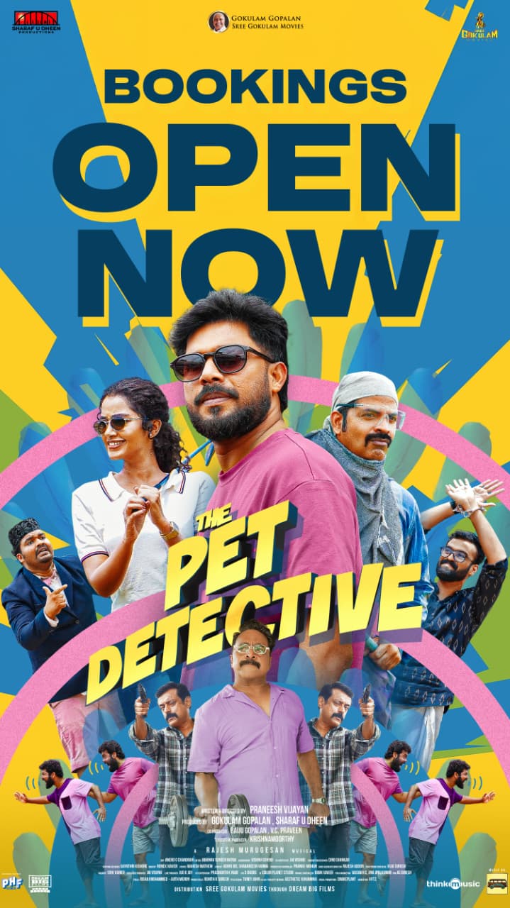 ഷറഫുദീൻ പ്രൊഡക്ഷൻസിന്റെ ബാനറിൽ ഷറഫുദീൻ, ശ്രീ ഗോകുലം മൂവീസിൻ്റെ ബാനറിൽ ഗോകുലം ഗോപാലൻ എന്നിവർ ചേർന്ന് നിർമ്മിക്കുന്ന ചിത്രം 'പെറ്റ് ഡിറ്റക്ടീവ്' ഒക്ടോബർ 16ന് ആഗോള റിലീസായത്തും. ചിത്രത്തിന്റെ ഓൺലൈൻ ടിക്കറ്റ് ബുക്കിംഗ് ആരംഭിച്ചു. ബുക്ക് മൈ ഷോ, ടിക്കറ്റ് ന്യൂ, ഡിസ്ട്രിക്ട്, ക്യാച്ച് മൈ സീറ്റ് തുടങ്ങി വിവിധ ഓൺലൈൻ ടിക്കറ്റ് ബുക്കിംഗ് ആപ്പുകൾ വഴി ചിത്രത്തിന്റെ ടിക്കറ്റുകൾ അഡ്വാൻസ് ആയി ബുക്ക് ചെയ്യാം.