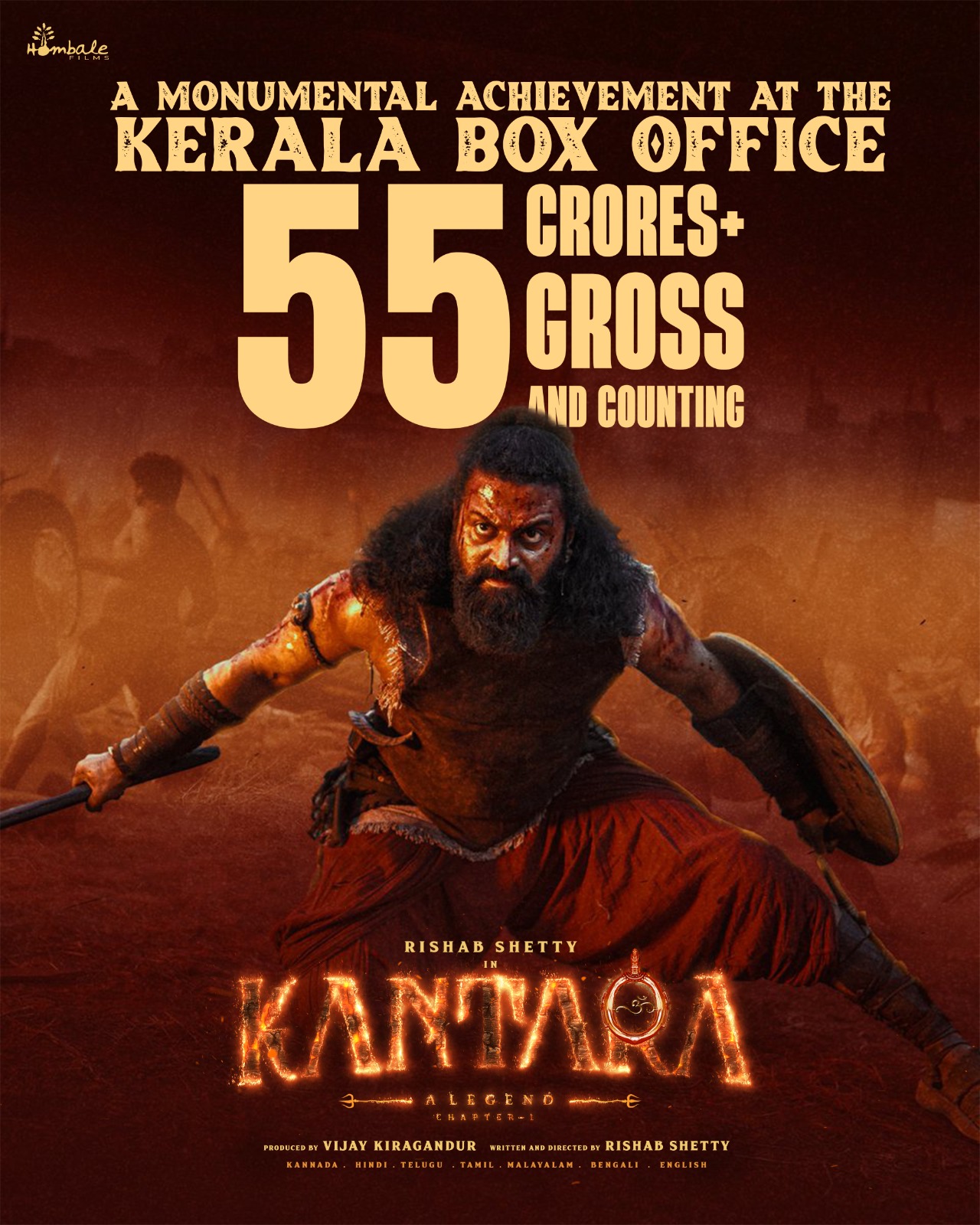 കേരളത്തിൽ അതുല്യമായ റെക്കോർഡ് സ്വന്തമാക്കി ഹോംബാലെ ഫിലിംസിന്റെ “കാന്താര ചാപ്റ്റർ1. കേരളത്തിൽ നിന്ന് ₹55 കോടി ചിത്രം നേടിയതായി ചിത്രത്തിന്റെ അണിയറപ്രവർത്തകർ സ്ഥിതീകരിച്ചു. പൃഥ്വിരാജ് പ്രൊഡക്ഷൻസ് വിതരണം ചെയ്ത ഈ ചിത്രം, മലയാളമല്ലാത്ത ഒരു ചിത്രത്തിന് കേരളത്തിൽ ലഭിച്ച ഏറ്റവും വലിയ കളക്ഷൻ എന്ന റെക്കോർഡോടെ 55 കോടി കളക്ഷൻ ചിത്രം നേടി. ഋഷഭ് ഷെട്ടി രചന നിര്വഹിച്ച് സംവിധാനംചെയ്ത 'കാന്താര'യുടെ പ്രീക്വല് ആയ കാന്താര: എ ലെജന്ഡ്- ചാപ്റ്റര് 1 ഒക്ടോബർ 2 നാണ് പ്രദര്ശനത്തിനെത്തിയത്. റിലീസ് ചെയ്ത് ദിവസങ്ങൾ പിന്നിടുമ്പോൾ ഞെട്ടിക്കുന്ന കളക്ഷനാണ് ചിത്രം എല്ലാ ഭാഷകളില് നിന്നുമായി സ്വന്തമാക്കിയിരിക്കുന്നത്.