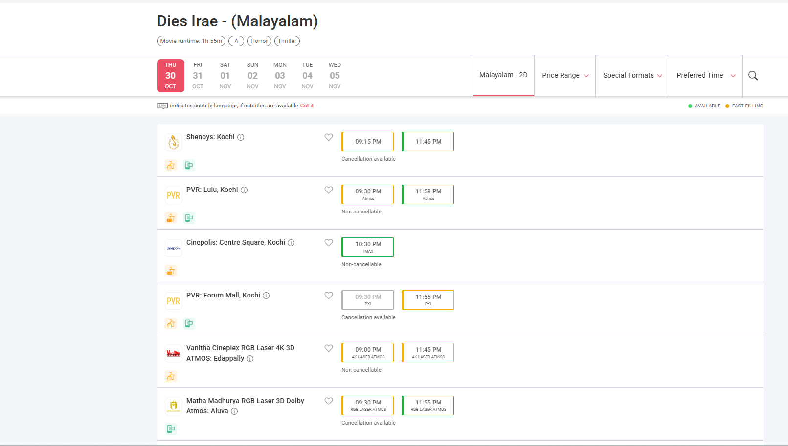 #Diesirae trending in bms even before opening full fledged shows....#PranavMohanlal #Nightshiftstudios #RahulSadasivan pic.twitter.com/po3KWD3MTO