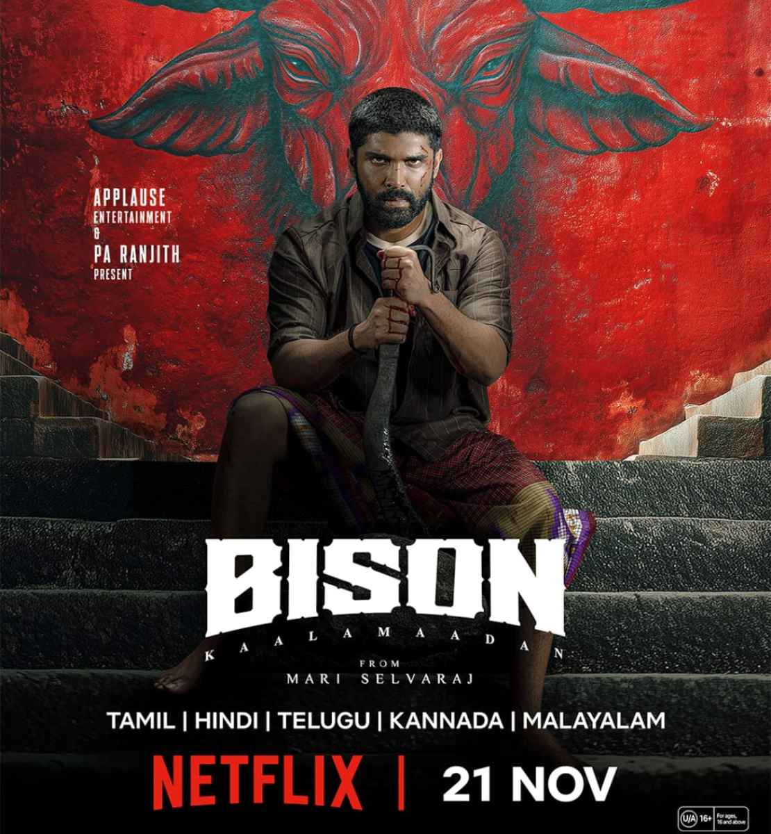 ധ്രുവ് വിക്രമിനെ നായകനാക്കി മാരി സെൽവരാജ് ഒരുക്കിയ സ്പോർട്സ് ഡ്രാമ ചിത്രമാണ് ബൈസൺ. മികച്ച പ്രതികരണം നേടിയ സിനിമ ബോക്സ് ഓഫീസിലും നേട്ടമുണ്ടാക്കിയിട്ടുണ്ട്. ആഗോള ബോക്സ് ഓഫീസില് 65.69 കോടി രൂപയാണ് ബൈസണ് ഇതുവരെ നേടിയിരിക്കുന്നത്. തിയേറ്റർ റണ്ണിന് ശേഷം ചിത്രം ഒടിടിയിൽ എത്തുകയാണ്. നവംബര് 21 മുതല് നെറ്റ്ഫ്ലിക്സിലൂടെ ചിത്രം സ്ട്രീമിംഗ് ആരംഭിക്കും.