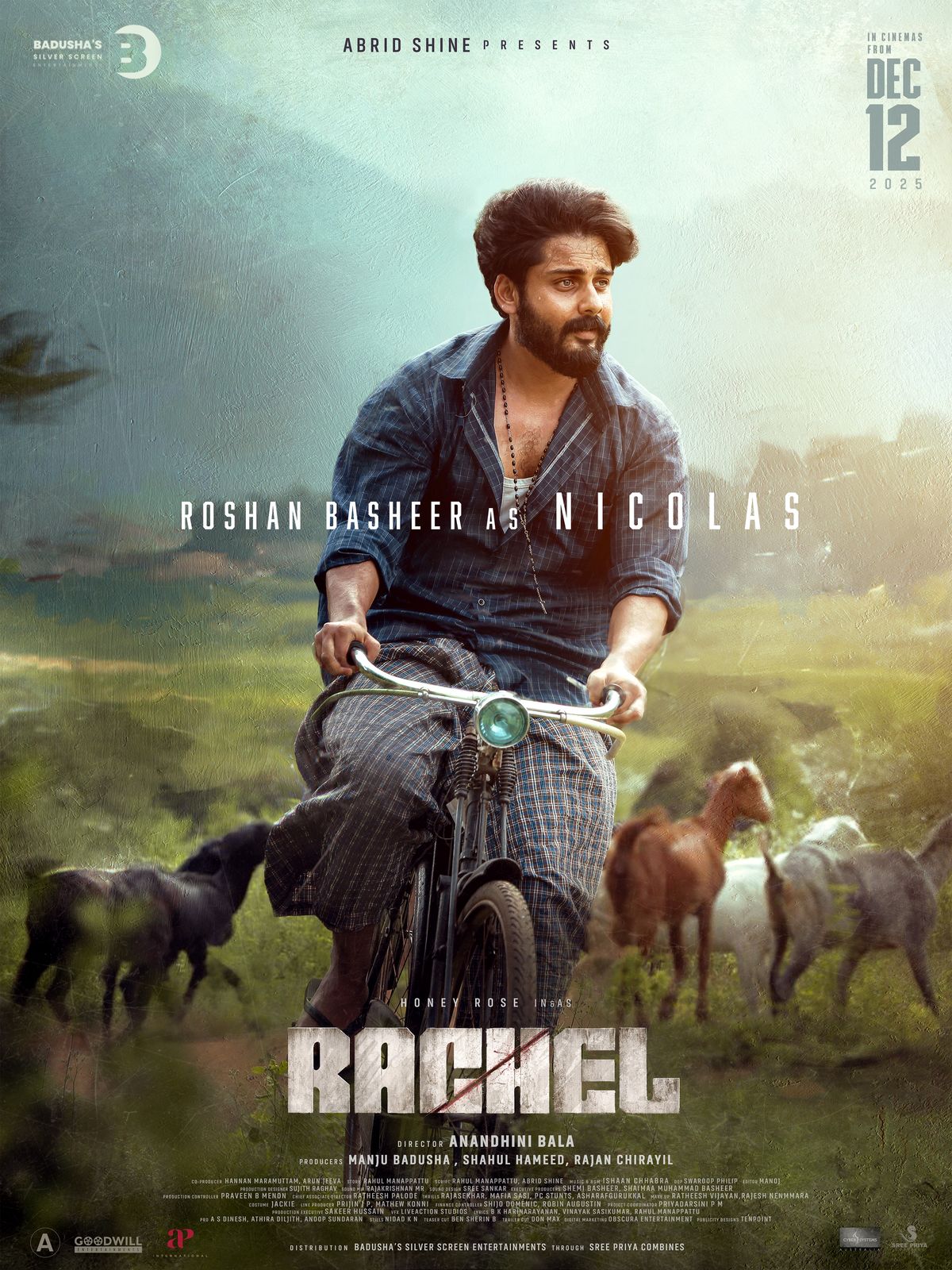 പ്രണയവും നൊമ്പരവും പകയും സംഘർഷവും രക്തചൊരിച്ചിലും എല്ലാം ചേർന്നൊരു സിനിമാനുഭവം സമ്മാനിക്കാനായി തിയേറ്റുകളിൽ എത്താനൊരുങ്ങുകയാണ് ഹണി റോസ് നായികയായെത്തുന്ന 'റേച്ചൽ'. ഡിസംബർ 12നാണ് സിനിമയുടെ റിലീസ്. ചിത്രത്തിൽ നായക വേഷത്തിലെത്തുന്ന റോഷൻ ബഷീറിന്റെ ക്ടാരക്ടർ പോസ്റ്റർ പുറത്തുവിട്ടിരിക്കുകയാണ് ഇപ്പോൾ അണിയറപ്രവർത്തകര്. ചിത്രത്തിൽ നിക്കോളാസ് എന്ന കഥാപാത്രമായാണ് റോഷൻ എത്തുന്നത്. 'ദൃശ്യം' സിനിമയിലൂടെ ശ്രദ്ധേയനായ റോഷൻ ഏറെ അഭിനയ പ്രാധാന്യമുള്ള റോളിലാണ് ചിത്രത്തിലെത്തുന്നതെന്നാണ് അറിയാനാകുന്നത്.