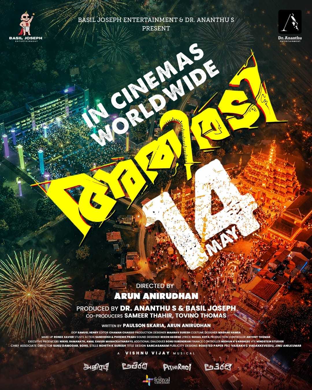 ബേസിൽ ജോസഫ്, ടൊവിനോ തോമസ്, വിനീത് ശ്രീനിവാസൻ എന്നിവർ കേന്ദ്ര കഥാപാത്രങ്ങളായി എത്തുന്ന മൾട്ടി സ്റ്റാർ ചിത്രം അതിരടി മെയ് 14 ന് ആഗോള റിലീസായെത്തും. ഒരു മാസ്സ് കോമഡി ക്യാമ്പസ് ആക്ഷൻ എന്റർറ്റൈനെർ ആയൊരുങ്ങുന്ന ചിത്രം നിർമ്മിക്കുന്നത് ഡോ. അനന്തു എന്റർടൈൻമെൻറ്സിന്റെ ബാനറിൽ ഡോ. അനന്തു എസും, ബേസിൽ ജോസഫ് എന്റർടൈൻമെന്റ്സിന്റെ ബാനറിൽ ബേസിൽ ജോസഫും ചേർന്നാണ്.