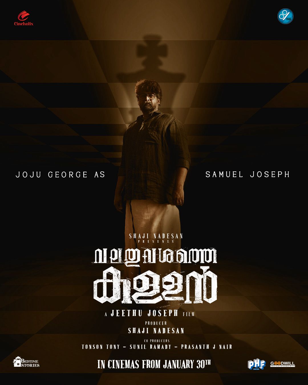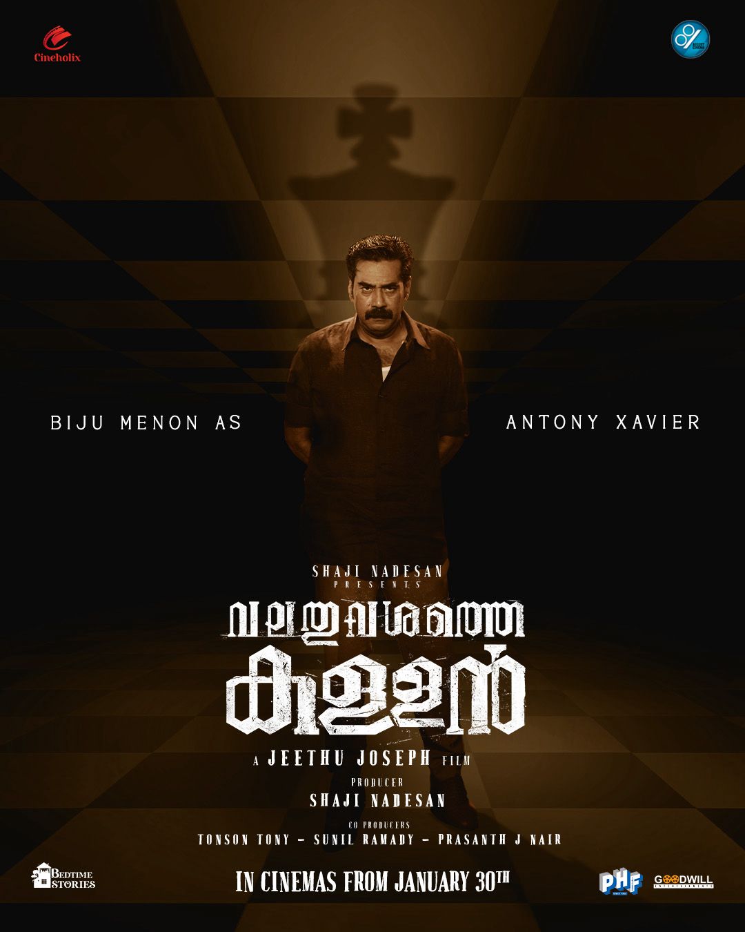ആന്റണി സേവ്യർ എന്ന കഥാപാത്രമായാണ് ചിത്രത്തിൽ ബിജു മേനോൻ എത്തുന്നത്. സാമുവൽ ജോസഫ് എന്ന കഥാപാത്രമായാണ് ചിത്രത്തിൽ ജോജു ജോർജ് എത്തുന്നത്. 'വളച്ചൊടിച്ച സത്യങ്ങളുടെ ലോകത്തെ അപ്രതീക്ഷിത വഴിത്തിരിവ്', എന്ന വാചകത്തോടെയാണ് പോസ്റ്റർ പുറത്തുവിട്ടിരിക്കുന്നത്. ജോജു ജോർജിൻ്റെ കരിയറിൽ തന്നെ വേറിട്ടൊരു വേഷമാണ് ചിത്രത്തിലേതെന്നാണ് സൂചന.