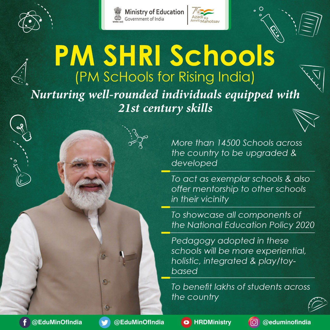 പി എം ശ്രീ വിദ്യാലയങ്ങൾ ആധുനികവും പരിവർത്തനപരവുമായ വിദ്യാഭ്യാസരീതി നടപ്പാക്കുന്ന മാതൃകാ വിദ്യാലയങ്ങളായി പ്രവർത്തിക്കും. ഇതിലൂടെ ലക്ഷ്യമിടുന്ന കാര്യങ്ങൾ ഇവയാണ്: