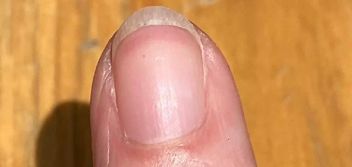 നഖങ്ങളുടെ അഗ്രഭാഗത്ത് വെളുത്ത നിറത്തിലുള്ള ഒരു ഭാഗവും അടിഭാഗത്ത് പിങ്ക് നിറത്തിലുള്ള ഭാഗവും കാണാം. നഖത്തിലുണ്ടാകുന്ന ഈ മാറ്റം ലിവര് സിറോസിസിന്റെ സൂചനയാകാം. ഹൃദയ രോഗങ്ങള്, പ്രമേഹം തുടങ്ങിയ അവസ്ഥകളിലും ഇത് കാണപ്പെടാം. നഖത്തിന്റെ അടിഭാഗത്തുള്ള രക്തപ്രവാഹം കുറയുന്നതും പ്രോട്ടീന് അളവിലെ മാറ്റങ്ങളുമാണ് ഈ നിറംമാറ്റത്തിന് കാരണം.