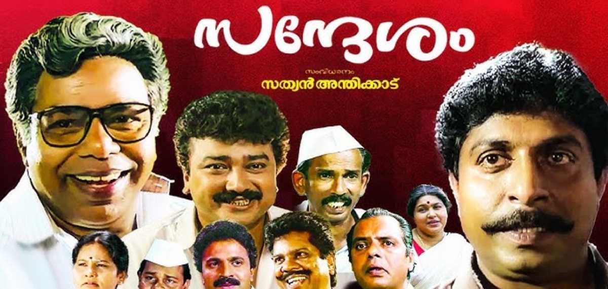 ശ്രീനിവാസന്റെ കഥയിലും തിരക്കഥയിലും ഒരുങ്ങിയ ചിത്രമായിരുന്നു 1991ല്‍ പുറത്തിറങ്ങിയ 'സന്ദേശം'. ആ വര്‍ഷത്തെ മികച്ച കഥയ്ക്കുള്ള സംസ്ഥാന അവാര്‍ഡ് ഈ ചിത്രത്തിന് ലഭിച്ചു. 'വിഘടനവാദികളും പ്രതിക്രിയാവാദികളും പ്രഥമ ദൃഷ്ട്യാ അകല്‍ച്ചയിലായിരുന്നെങ്കിലും അവര്‍ക്കിടയിലുള്ള അന്തര്‍ധാര സജീവമായിരുന്നു എന്ന് വേണം കരുതാന്‍' ഈ ഡയലോഗ് തുടങ്ങി ആ സിനിമയിലെ പല ഡയലോഗുകളും പറയാത്തതും കേള്‍ക്കാത്തതുമായ മലയാളികള്‍ വിരളമായിരിക്കും.